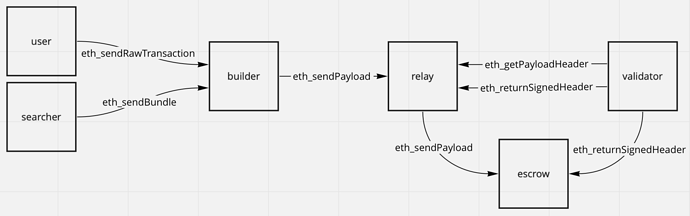 在 2021 年,Vitalik 與以太坊基金會的研究員對提議者/構建者分離方案 (PBS) 提出了具體的設計,以解決 MEV 問題。同年的 11 月,Flashbots 團隊便基于 PBS 的設計提出了 MEV-Boost,用于合并后的 Flashbots 架構,可以看作是 PBS 的原型。Flashbots 競拍架構允許驗證者將區塊構建外包給一個第三方區塊構建者網絡,但將 mev-boost 中繼置于受信任的位置——區塊構建者和提議者都需要信任中繼。