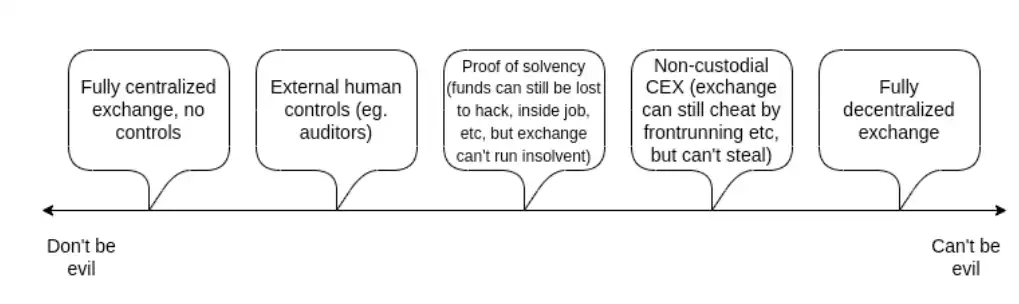 更有野心的是,交易平臺可以建立一個未經儲戶同意無法提取儲戶資金的系統。我們可以嘗試探索「不作惡」有職業素養的 CEX 與「無法作惡」卻泄漏隱私的低效鏈上 DEX 之間的界限。這篇文章將深入探討讓 CEX 更加去信任的歷史嘗試,與其采用技術的局限性,以及一些依賴 ZK-SNARKs 等先進技術的有力手段。