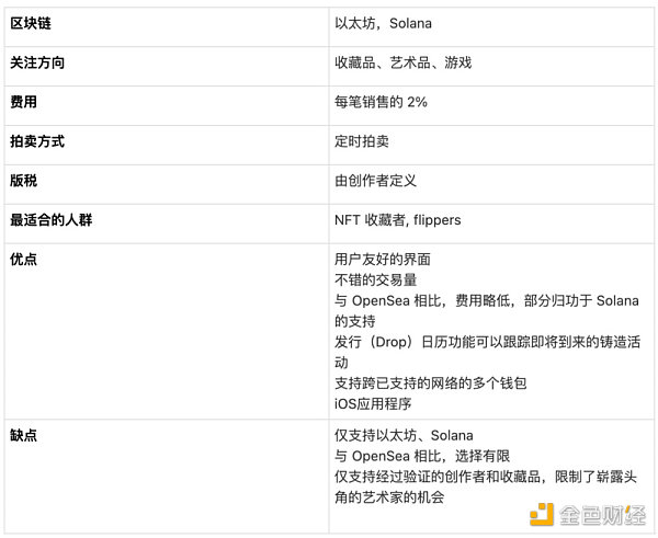 本文提供了詳盡的 NFT 市場列表,回顧了諸如功能、優缺點以及費用之類的內容。OpenSea 和 Magic Eden 最受歡迎,收藏品范圍廣,支持多個區塊鏈。