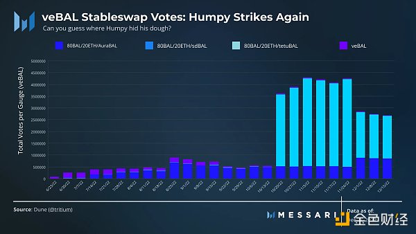Aura 是 Balancer 生態系統中領先的 veBAL 流動性鎖定協議,其成功取決于 Balancer 的成功。認識到形勢的嚴峻性,Balancer 社區很可能需要挖掘 Aura 錢包的潛力來抵御 Humpy 的行為。