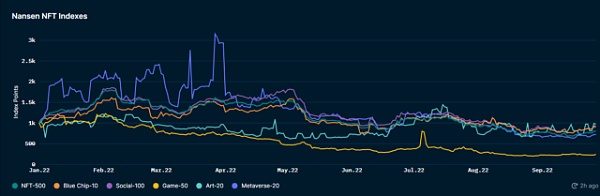 圖片:500 強 NFT 指數與已建立的“藍籌”項目(截至 2022 年 9 月 28 日)