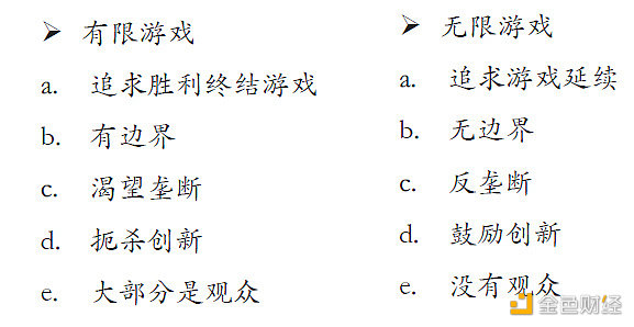 無限游戲的特性:無邊界、鼓勵創新、沒有觀眾人人都是參與者。這些特性都將推動 web3 能夠在過去互聯網的基礎上,改造更多的場景、創造更繁榮的生態、讓更多的人參與價值分享。