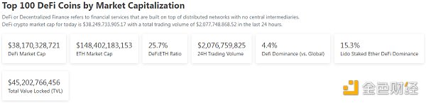 1、DeFi代幣總市值:390.4億美元