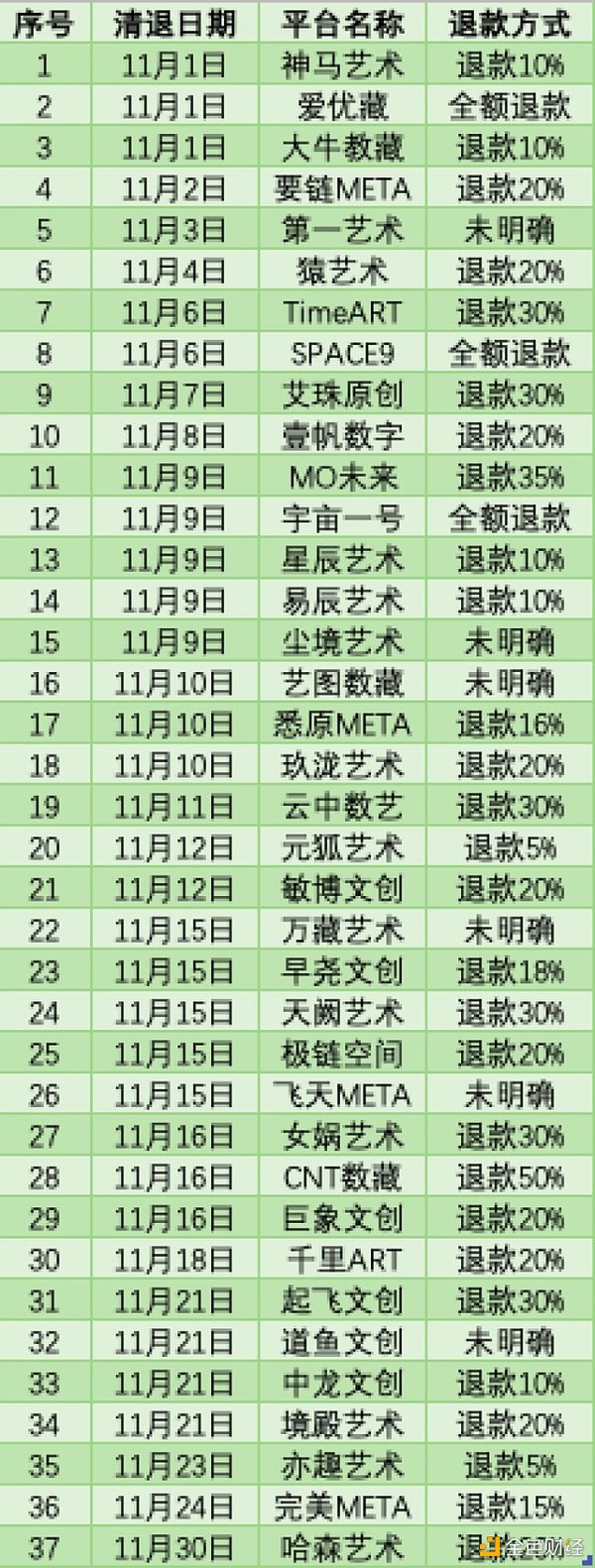 《華夏時報》記者初步統計發現,剛剛過去的11月,已有超過30家數字藏品平臺主動發布清退公告。