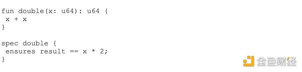 下方是一個double函數及其規范的簡單示例。double函數的功能是將一個64位無符號整數(unsigned integer)進行翻倍計算。由spec double給出的double 規范從數學上描述了預期的結果。