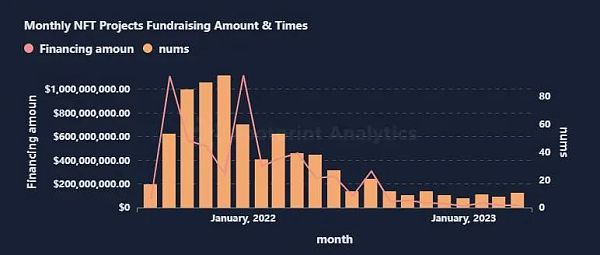 盡管 NFT 項目獲得融資的數量略有增加,但資金的減少表明投資者對投資持謹慎態度。