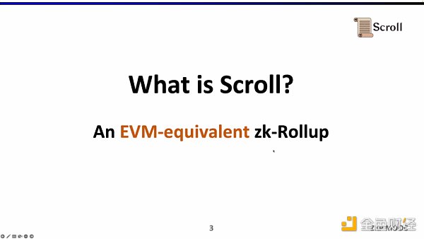 XRP/HKD+0.54%演講分成四個部分,第一部分張燁介紹了開發背景以及我們為什么首先需要zkEVM以及為什么它在最近兩年間變得如此受歡迎,第二部分通過一個完整的流程,講解如何從頭開始構建zkEVM包括算術化和證明系統,第三部分通過一些有趣的研究問題來談論了Scroll 在構建 zkEVM時遇到的問題,最后介紹了一些其他使用zkEVM的應用。