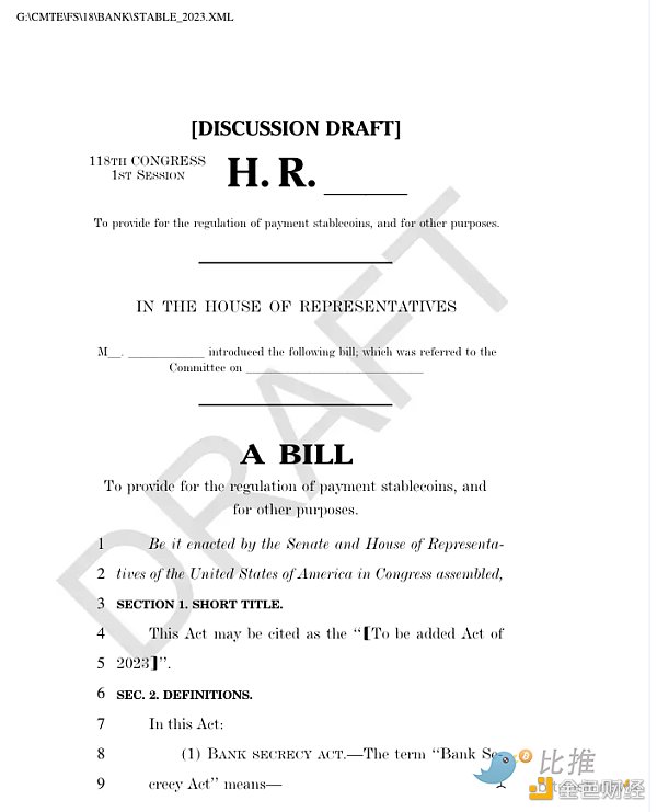 新法案的長度是去年秋天發布的上一份草案的一半,不再涉及算法穩定幣或要求對中央銀行數字貨幣進行研究,重點關注用于支付的穩定幣,管理單個潛在穩定幣發行方的注冊過程,旨在成為管理美國數字資產市場的立法的配套文件。