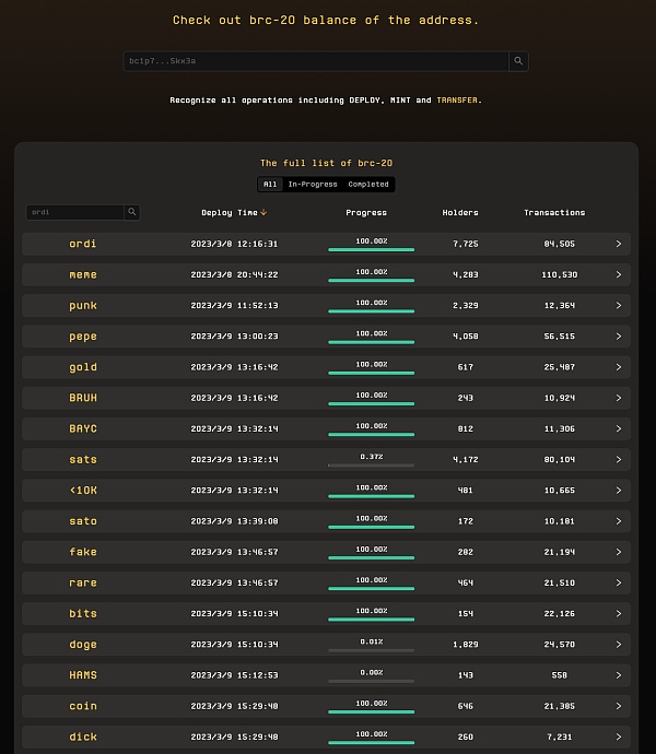 $ordi - 市值 2.1 億美金,名字是 ordinals 協議的前 4 個字母,brc20 協議第一個代幣,持幣地址:7381。
