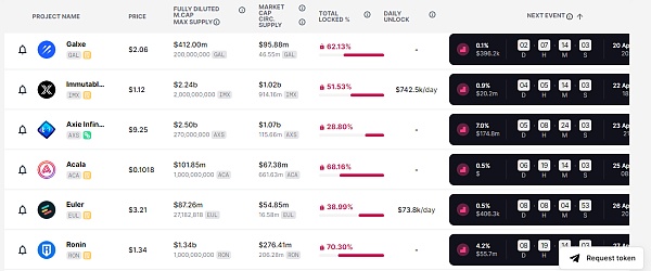 在尋找投資機會時,查看項目的代幣解鎖時間表可能很有用。Token Unlocks 提供了這樣一個簡單的工具,可以讓你找到大多數項目的解鎖時間表。