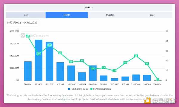 就 DeFi 而言,融資仍處于緩慢增長階段。上個月只有 17 個 DeFi 項目成功籌集到資金,總計 9400 萬美元,公平地說,相比之下去年 3 月對 DeFi 的融資也不太好,當時有 45 個項目籌集了 3 億美元。
