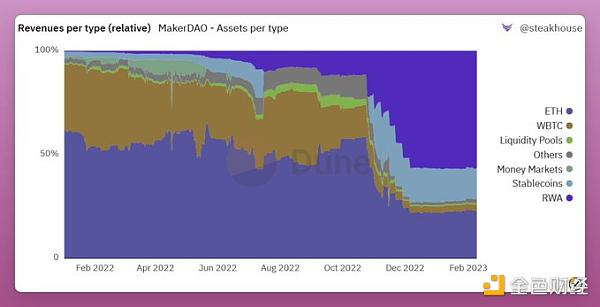 15、事實上,Maker 已經從 RWA 中獲得了 57% 的收入。Spark 協議將有助于增加 DAI 的供應量,從而產生更多收入。它還可以整合 Element Finance 和 Sense Finance 以提供固定利率借款和多元化收入。