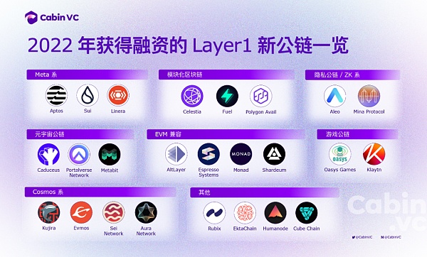 這一賽道仍然充滿更多可能。Cabin 整理了 2022 年獲得融資的 L1 公鏈項目,并從中做出總結: