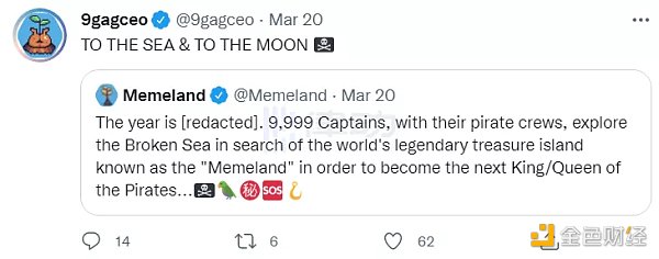 在 2022 年 4 月,Memeland 的 Twitter 剛剛啟動,它的網站上這樣寫道:「Memeland 是 9GAG 的 Web3 生態系統,它的使命是通過連接 Web2 和 Web3 為創作者賦能。」