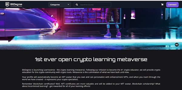 Learnoverse 是一個由 BitDegree 推出的教育元宇宙平臺。其尋求使用區塊鏈來頒發獎學金、保存教學視頻內容并提供證書。Learnoverse 專注于加密和區塊鏈教育,計劃結合 Learn & Earn 系統來搭建自己的加密學習元宇宙,從而為學習者、講師、加密公司和影響者等多種角色提供加密原生教育概念。