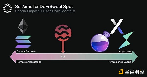 Sei作為新生的Layer 1公鏈,不同于其他公鏈,它并沒有在通用鏈和特定于應用程序的鏈之間選邊站。相反,Sei在這兩者之間找到了一個中間地帶,成為專為交易而構建的公鏈。相較于通用公鏈,Sei在技術棧的每個層面都進行了優化,以提供最佳的交易基礎設施。與特定于應用程序的鏈相比,Sei則是一種相對通用的公鏈,可以支持各種交易應用程序,而不是只針對某一個特定的應用程序。這使得Sei成為一個更加靈活和可定制的交易基礎設施,能夠滿足不同類型的交易應用程序的需求。