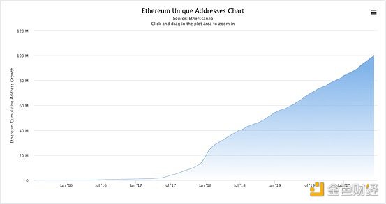 2、擁有ETH的總地址達4000萬(每天增長10萬);