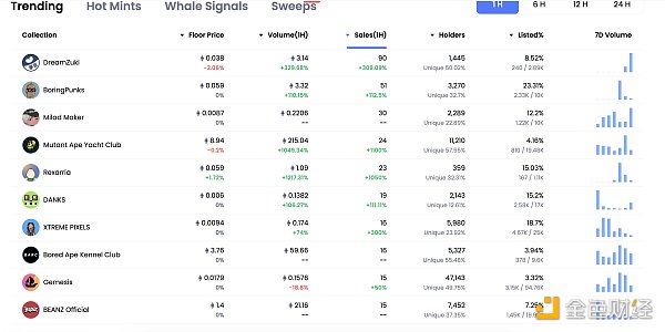24小時內銷售前十的NFT 數據來源:NFTGO