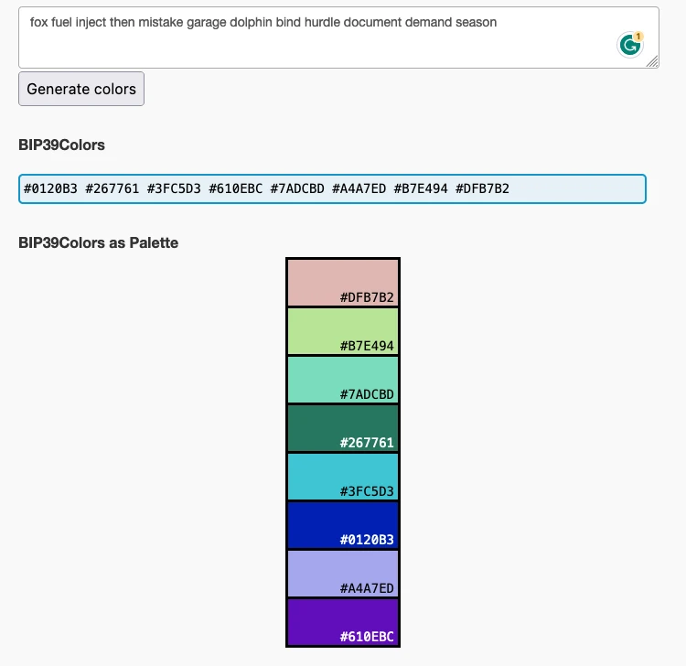 就在最近,比特幣開發者Entero Positivo發布了一款名為"BIP39Colors"的開源工具,其主要功能是將BIP39助記詞轉換為一組顏色,并且還可以實現顏色到助記詞的逆轉換。通過將助記詞轉換為顏色組合,可以提供一種更具直觀性和易于記憶的方式來存儲和恢復加密貨幣錢包。