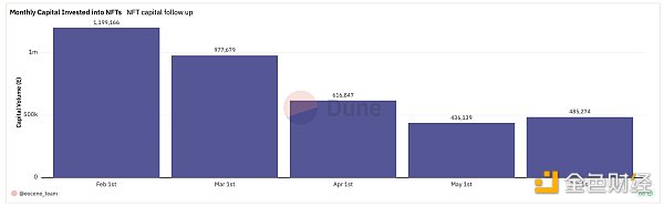 3. NFT 市場的投入資金逐月減少 20% -40%