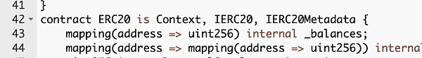 此代幣合約的代碼是開源的,想來是項目方為了增加項目的可信度。接下來我們對其源碼進行分析。一般來說,進行代幣增發最簡單的方式就是實現一個直接增加指定地址余額的方法。在當前合約中是通過定義一個 _balances 映射,對用戶的代幣余額進行記錄。但經過檢查,合約中并未實現對指定地址的 _balances 進行修改的代碼。