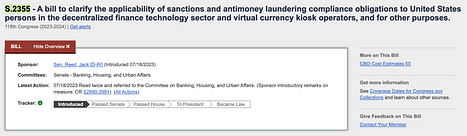 S.2355 — A bill to clarify the applicability of sanctions and antimoney laundering compliance obligations to United States persons in the decentralized finance technology sector and virtual currency kiosk operators, and for other purposes.(THE CRYPTO-ASSET NATIONAL SECURITY ENHANCEMENT AND ENFORCEMENT (CANSEE) ACT)-加密資產國家安全增強法案