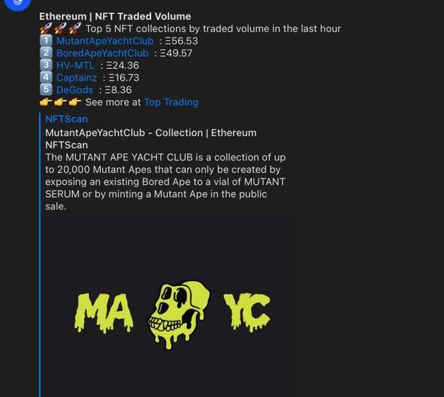 近日,NFTScan推出「nftonchain」Telegramchannel,實時推送鏈上NFT熱點數據。