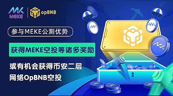 MEKE是opBNB測試網上首個鏈上衍生品交易平臺,根據opBNB奧德賽活動任務規則(主要任務是完成幣安L2測試鏈opBNB測試網的資產互換,且需要在幣安測試鏈水龍頭領取BNB,然后將其轉入opBNB測試網,再通過opBNB測試網進行提現、轉賬等操作),用戶只要參與了MEKE公測,基本上就完成了opBNB奧德賽活動的大部分任務,在獲得 MEKE空投獎勵的同時還有機會獲得opBNB的獎勵。而且參與MEKE公測,可以和opBNB測試網進行合約交互,可大大提升獲得opBNB奧德賽活動獎勵,瓜分5萬美金。