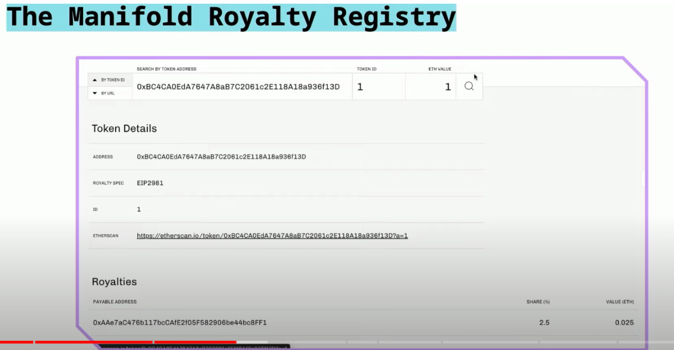 那么,我們如何才能使 EIP 2981 向后兼容,同時解決這個問題呢?這就是集中版稅注冊處(manifold royalty registry) 發揮作用的地方。它是一個典型的鏈上注冊表。它有兩個作用。首先,它將所有現