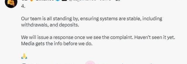 幣安說:“雖然我們認真對待SEC的指控,但它們不應成為SEC執法行動的對象,更不用說在緊急情況下了。我們打算大力捍衛平臺”。
