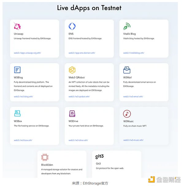 通過EthStorage,將能以去中心化存儲為底層來重新啟用互聯網應用(*當前很多Dapp依然使用中心化的方式存儲數據),比如動態 NFT、鏈上音樂 NFT、個人網站,無主機錢包、Dapp,Deweb等。