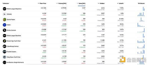 24小時內銷售前十的NFT 數據來源:NFTGO