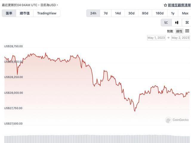 行情方面,此前價格一直在28,500美元附近徘徊的比特幣,在升息會議前夕錄得單日2%以上的跌幅,最低下探至27,600美元,截至撰稿時價格報27,990美元。