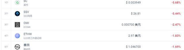 不幸的是,并非所有代幣今天都表現良好。加密貨幣前200名中表現最差的是Siacoin,損失了-5.68%。SSVNetwork也表現不佳,其價格在過去24小時內下跌了-5.44%。ECOMI、EthereumPoW和MobileCoin是今天表現最差的前5名。