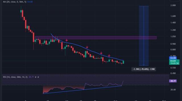 看跌勢頭減弱的跡象正在出現,每日相對強弱指數指標脫離超賣區域的關鍵看漲背離就證明了這一點。這表明上升趨勢可能會復蘇。因此,山寨幣COMBO的價格有可能在下一次復蘇嘗試中升至20日均線上方。它還可能導致短期內價格飆升至1美元左右。