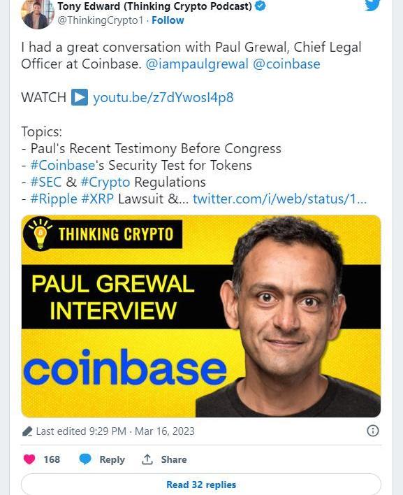 在ThinkingCrypto的采訪中,Grewal贊揚了Ripple為針對美國證券交易委員會的指控進行強有力的辯護所做出的努力。他指出,Coinbase去年不得不提交對Ripple有利的法庭之友簡報,因為他完全被Ripple辯方的論點說服了。Grewal進一步提到,他希望法院看到SEC的理論存在一些漏洞。盡管如此,他斷言此案可能會持續更長時間,因為無論誰輸了,都將在上訴法院接受判決。
