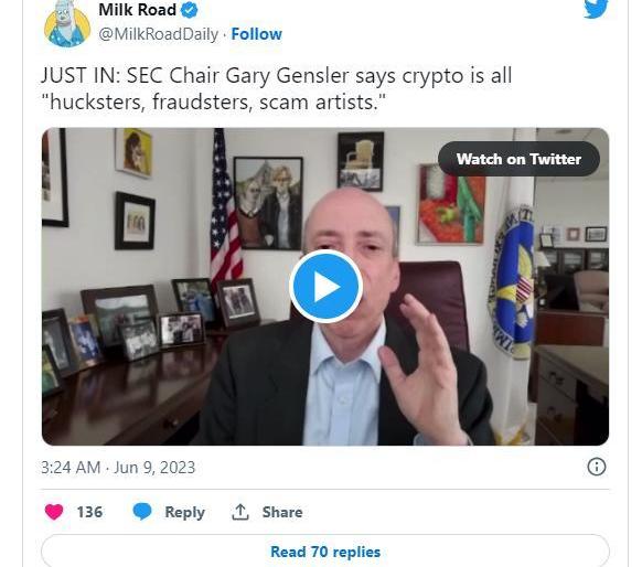 GaryGensler認為,如今的加密貨幣市場,就像曾經1920年的股市一般,充滿了「小販」,「詐騙分子」和「龐氏騙局」,而正如當年的國會,透過頒布證券法清掃股票市場一樣,現任的美國證券交易委員會也同樣能透過證券法來清掃加密貨幣市場。