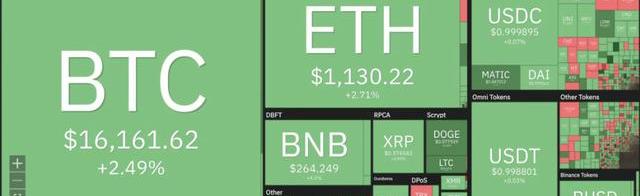 更大的加密貨幣市場全面呈現類似的上升趨勢,其中比特幣以2.5%的漲幅突破16,000美元。在山寨幣中,Ripple上漲5%至0.37美元,而Cardano上漲3%至0.31美元。Dogecoin上漲6%至0.08美元,而Polkadot在5.3美元附近走強,Solana上漲4%至11.98美元。