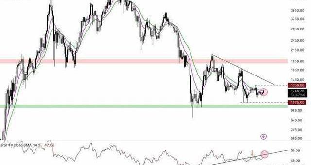 注意,賣家有可能把重點帶回家。這將需要收盤價低于最后低點1,075美元。如果這個低點被推低,看跌勢頭將繼續。無論發生什么情況,都必須守住每周1,000美元的支撐位,以避免出現另一波看跌浪潮。