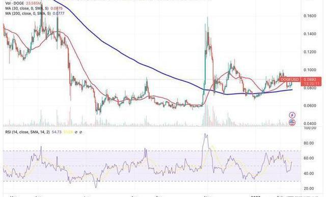 與此同時,代幣的30天移動平均線繼續攀升至200天移動平均線上方,而且看起來還沒有見頂。如果DOGE能夠突破0.09美元,它可能會看到一些持續上漲。