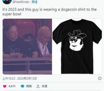 馬斯克在發布關于狗狗幣的推文和表情包方面有著悠久而輝煌的歷史。除了昨天的推文外,他最近還穿著一件狗狗幣T恤與FoxCorp.老板站在一起,標志著他出席了超級碗LVII。和新聞集團坐下,魯伯特·默多克。