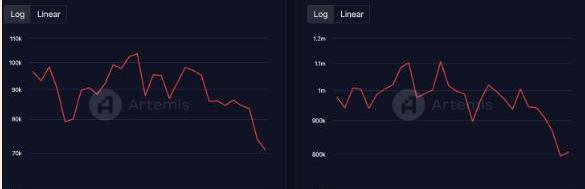 根據Artemis的數據,AVAX的每日活躍用戶和每日交易量下降,表明區塊鏈的使用量減少。