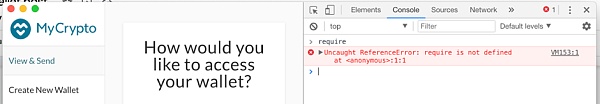如果Node.js未被啟動,控制臺將返回錯誤消息 “require is not defined”: