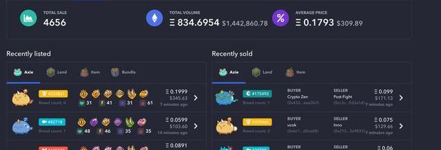 AxieInfinity作為目前知名度僅次于加密貓的寵物類NFT項目,主打GameFi概念,它搭建在以太坊上,主題是收集和飼養名為Axie的幻想生物。據Cryptoslam數據顯示,AxieInfinity在NFT市場上總交易量排名歷史第5。