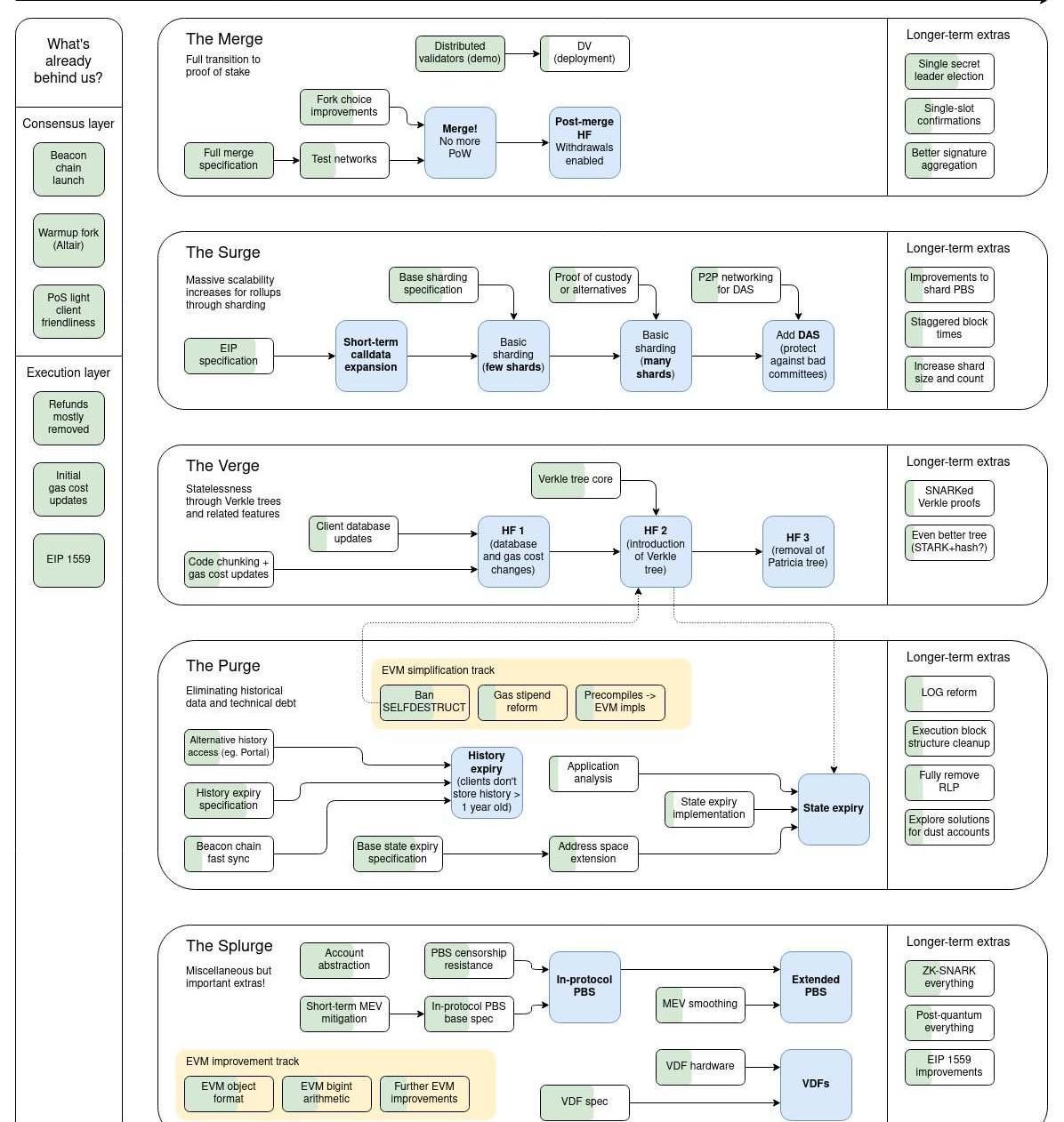 以太坊是世界上市值第二大的加密貨幣,在撰寫本文時,市值為4540億美元,使其完成之旅是高風險的。下面是Buterin上個月在推特上發布的路線圖副本。