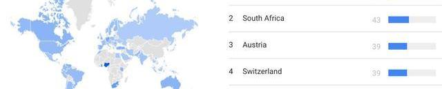 尼日利亞,南非,澳大利亞,瑞士和加納是今年比特幣搜索量排名前五的地區。