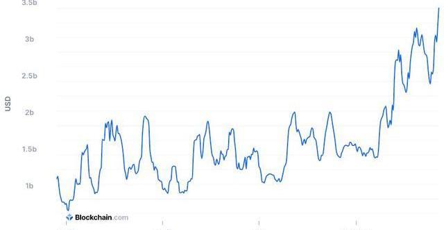 雖然上鏈交易的數量一年四季變化,總價值上鏈交易一直在接近恒定的上升趨勢,從1月1日的7.3億美元/天上升到12月18日的34億美元/天,自2018年1月以來的最高值。