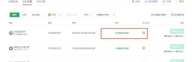 舉個例子,10月22日,在OKEx的C2C交易購買比特幣的價格在7.4萬左右。而三方數據平臺非小號上比特幣價格為8.5萬一枚,OKEx比特幣購買價格大概是市場價的87%,一旦開放提幣,OKEx比特幣回歸市場價,投資人能夠因低價購買比特幣獲得13%的利潤。