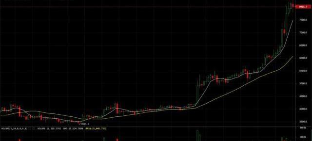 比特幣在此輪上漲過程中,近一個月來,由4000美元附近漲到8000美元附近,整整翻了一倍,其它主流幣也雨露均沾,甚至遠遠超過了比特幣的漲幅,但是我們認真的去看比特幣走勢發現,它和其它幣種不同的是拒絕回調,一路浩浩蕩蕩的怒沖到8000,無視任何壓力位,那到底是為什么呢?都到8000了牛市真的來了?后市怎么走