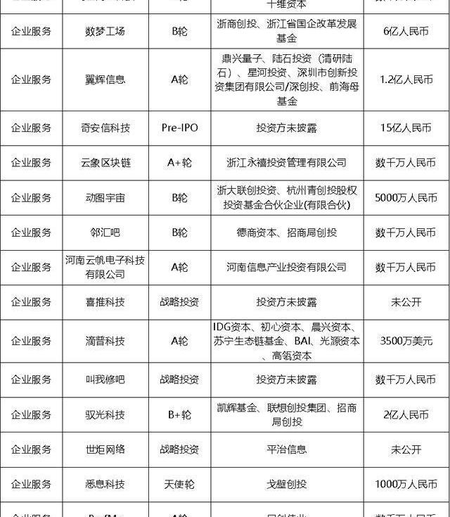 單筆融資額過億的融資案例主要集中在企業服務領域。